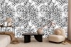 Wizualizacja tapety, czarne cętki na białym tle. Wizualizacja tapety, czarne cętki na białym tle. Wzornik tapety, czarne cętki na białym tle.