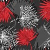 Wzornik tapety do sypialni, salonu, przedpokoju, gabinetu, biura. Tapeta na ciemnoszarym tle przedstawiająca abstrakcyjne liście egzotycznych roślin z dżungli, w kolorach czerwonym i szarym, oraz białe obrysy.