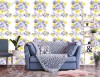 Wizualizacja tapety, bukiety mieszanych kwiatów w odcieniu fioletu i żółtego na białym tle.