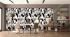 Wizualizacja tapety, grecka awangarda w odcieniach brązu i czerni na białym tle.