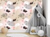 Wizualizacja tapety na ścianę do pokoju dziecięcego i sypialni. Tapeta w czarne i białe słonie, na kwiatowych chmurkach, na beżowym tle.Wizualizacja tapety na ścianę do pokoju dziecięcego i sypialni. Tapeta w czarne i białe słonie, na kwiatowych chmurkach, na beżowym tle.Wzornik tapety na ścianę do pokoju dziecięcego i sypialni. Tapeta w czarne i białe słonie, na kwiatowych chmurkach, na beżowym tle.